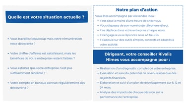 Votre conseiller en pilotage d’entreprise vous accompagne à chaque étape, que ce soit pour la gestion de la trésorerie, le suivi financier ou l’organisation comptable de votre TPE. L’accompagnement entrepreneurial Rivalis est entièrement personnalisé, adapté aux enjeux spécifiques de votre activité.