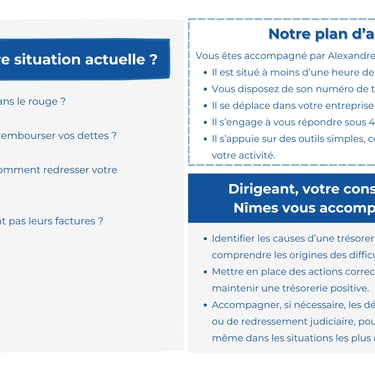 Vous souhaitez améliorer vos compétences en gestion financière ou savoir comment résoudre un problème de trésorerie ? Notre conseiller en pilotage d’entreprise répond à toutes vos questions et vous accompagne pour identifier précisément la nature et les causes de vos difficultés.